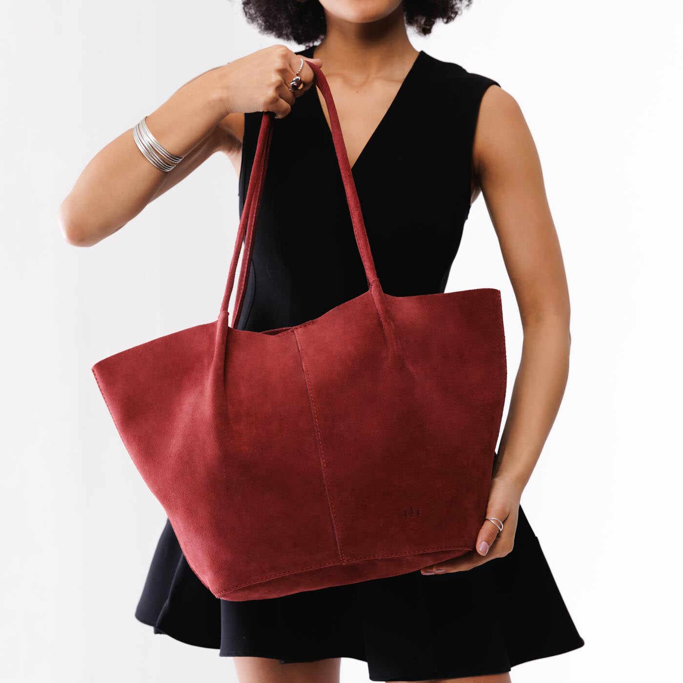 - Dual shoulder straps in supple full-grain leather