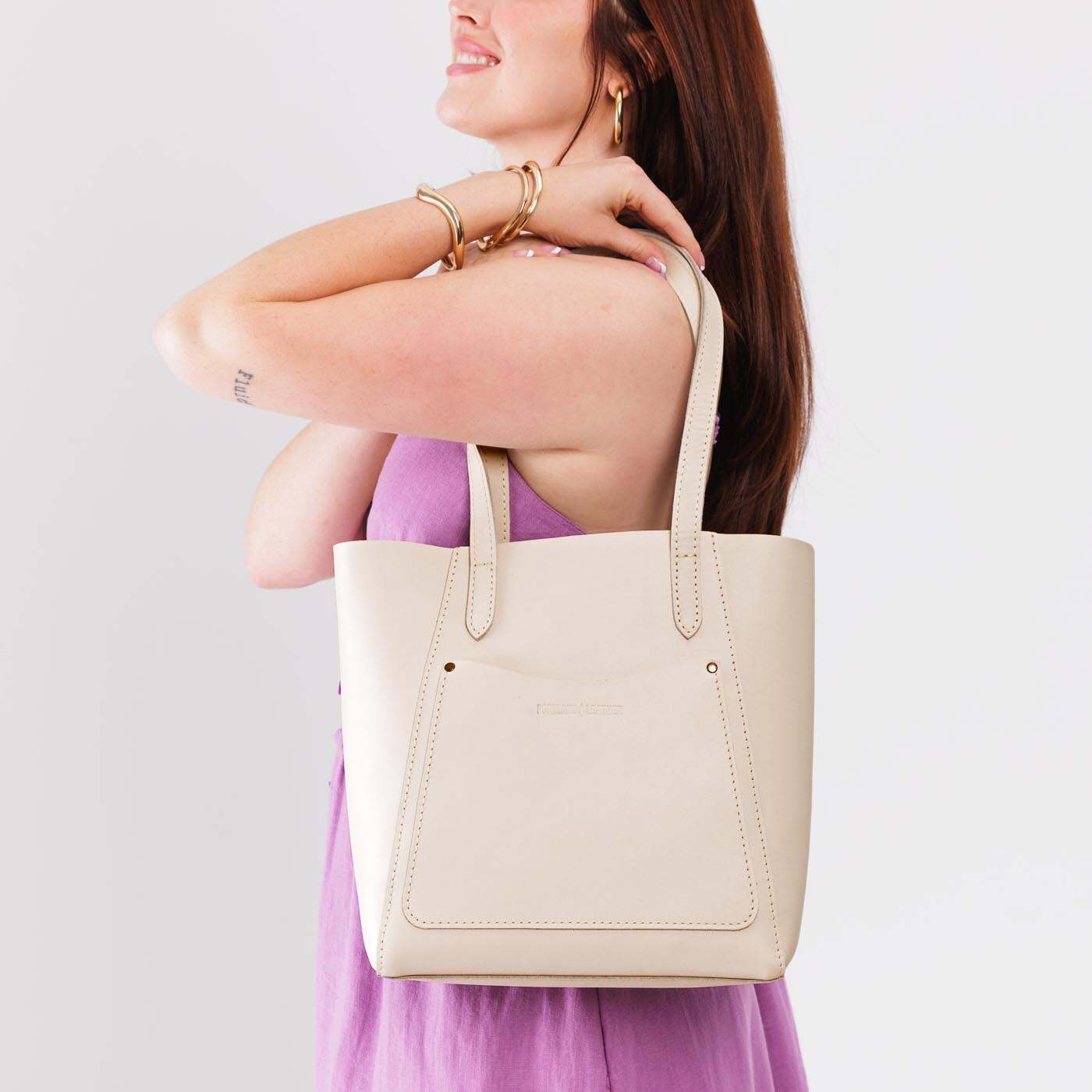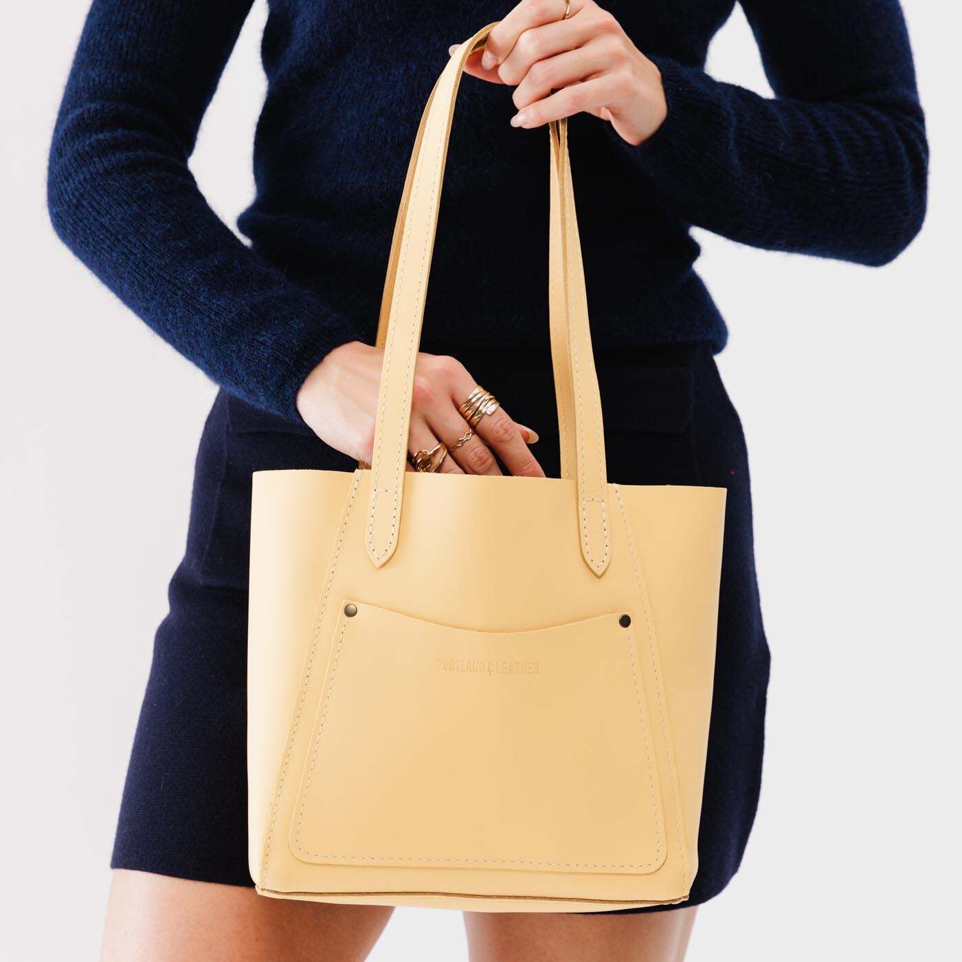 - Both sizes feature an open top, exterior pocket, and comfortable dual shoulder straps