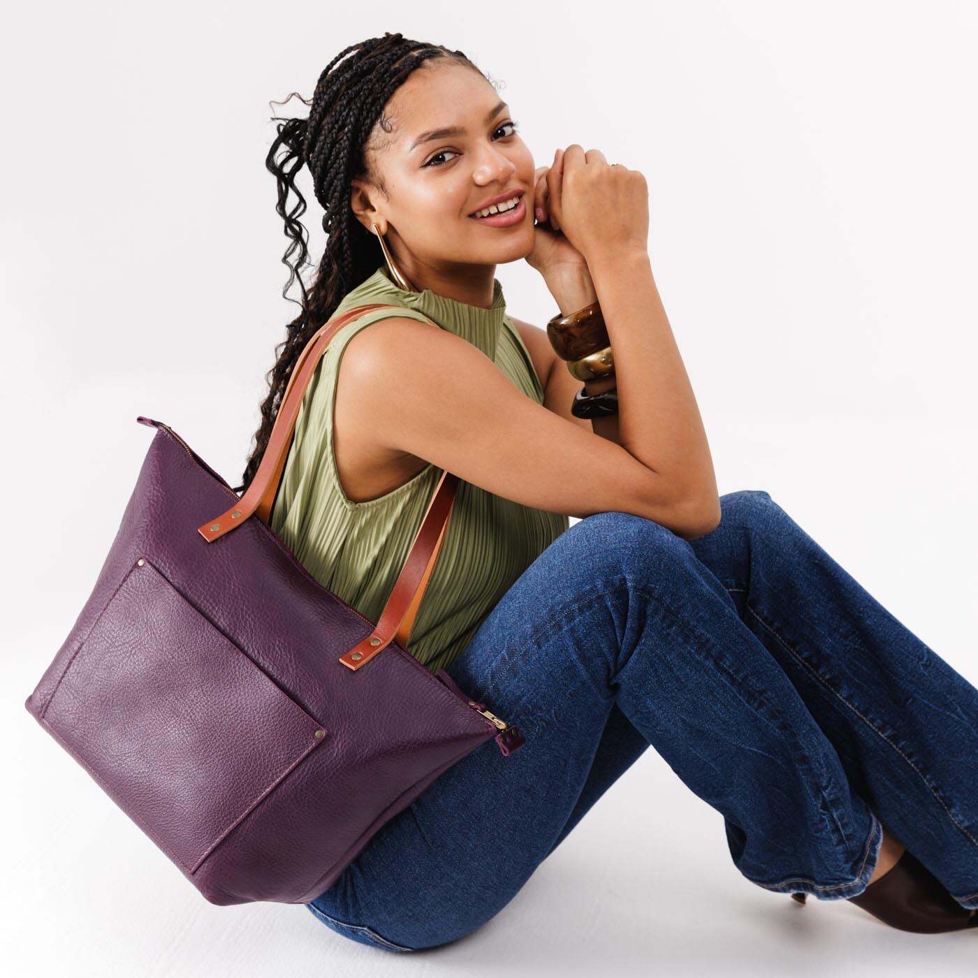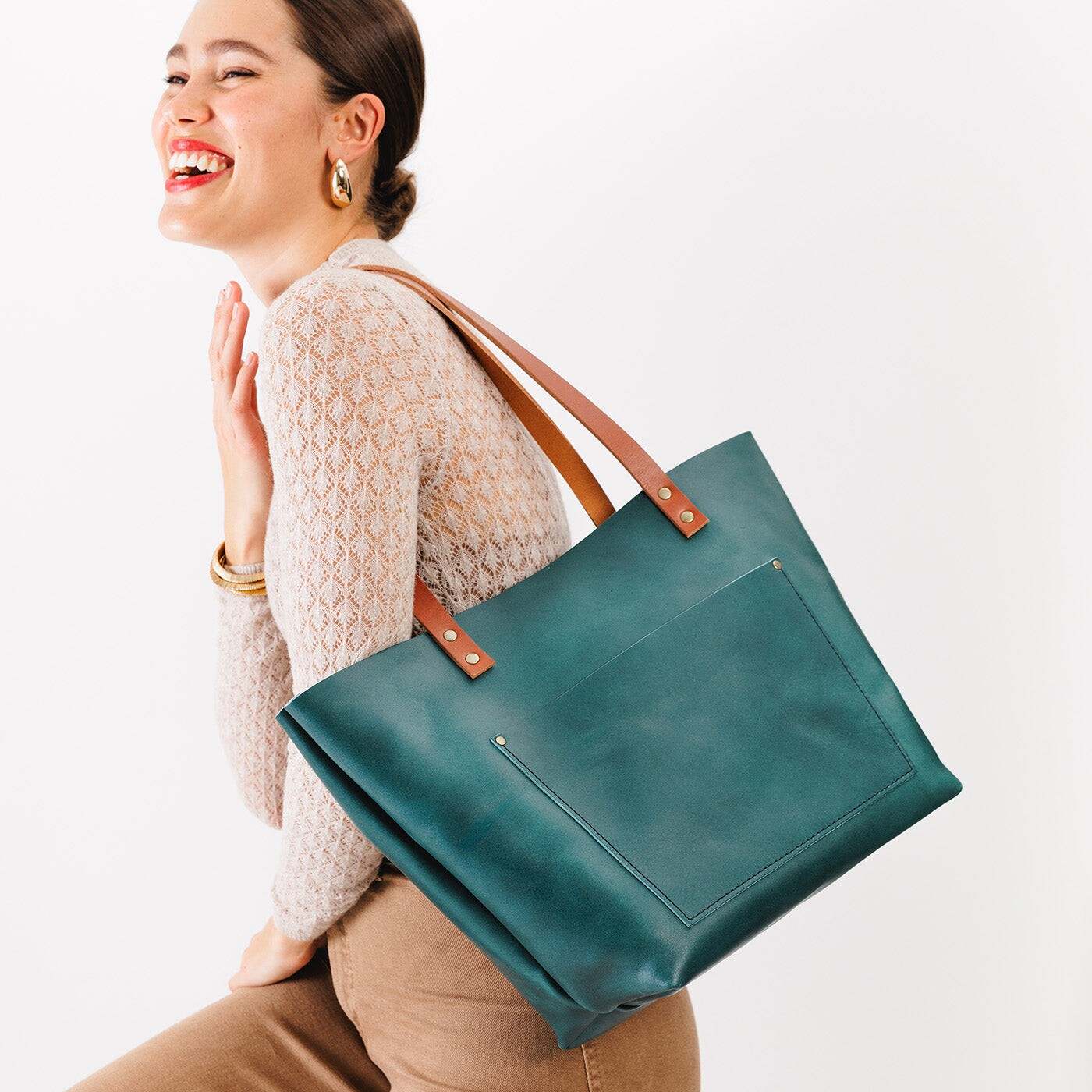 - Antiqued brass rivets look great with both silver and gold accessories