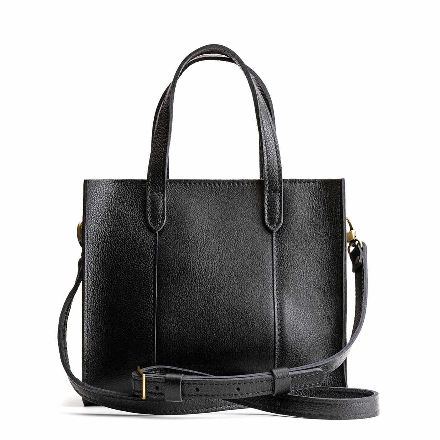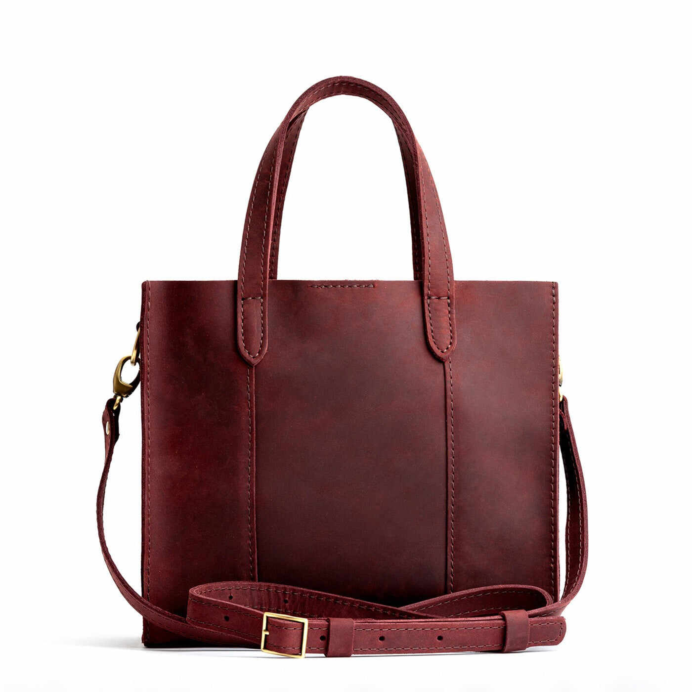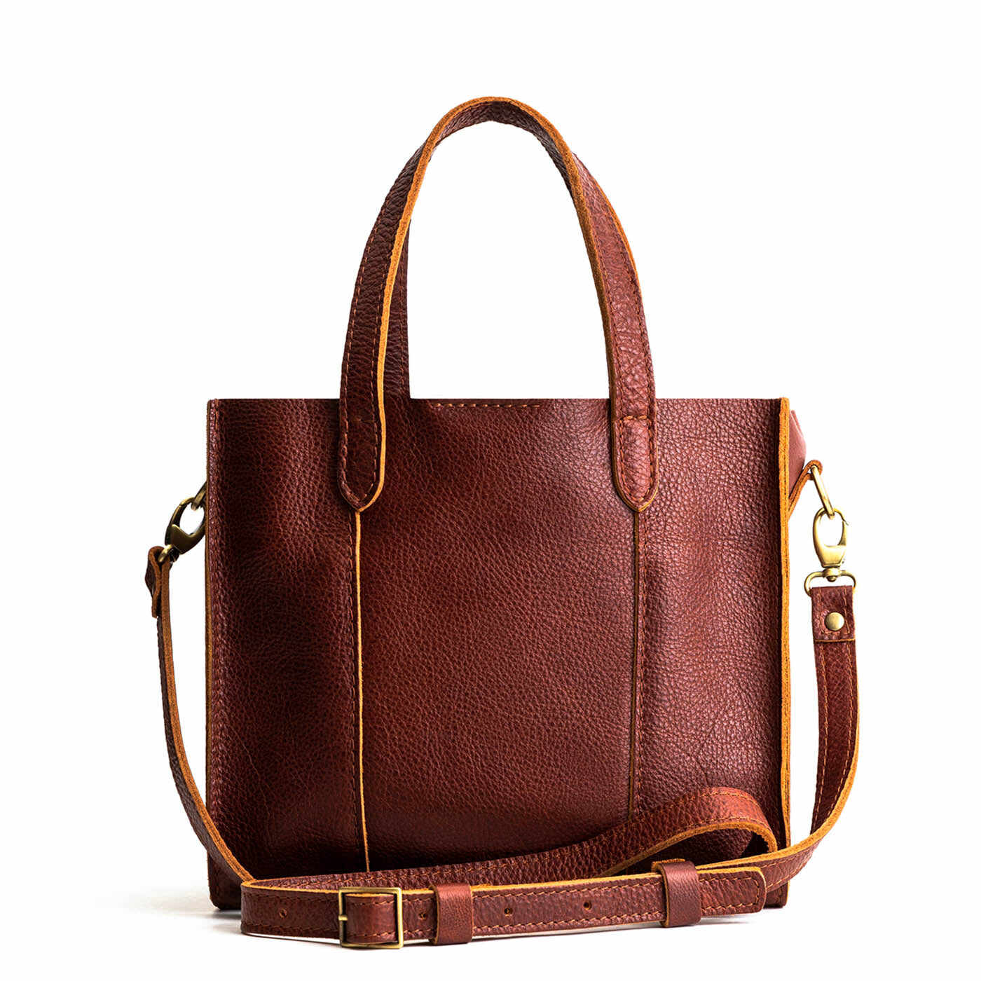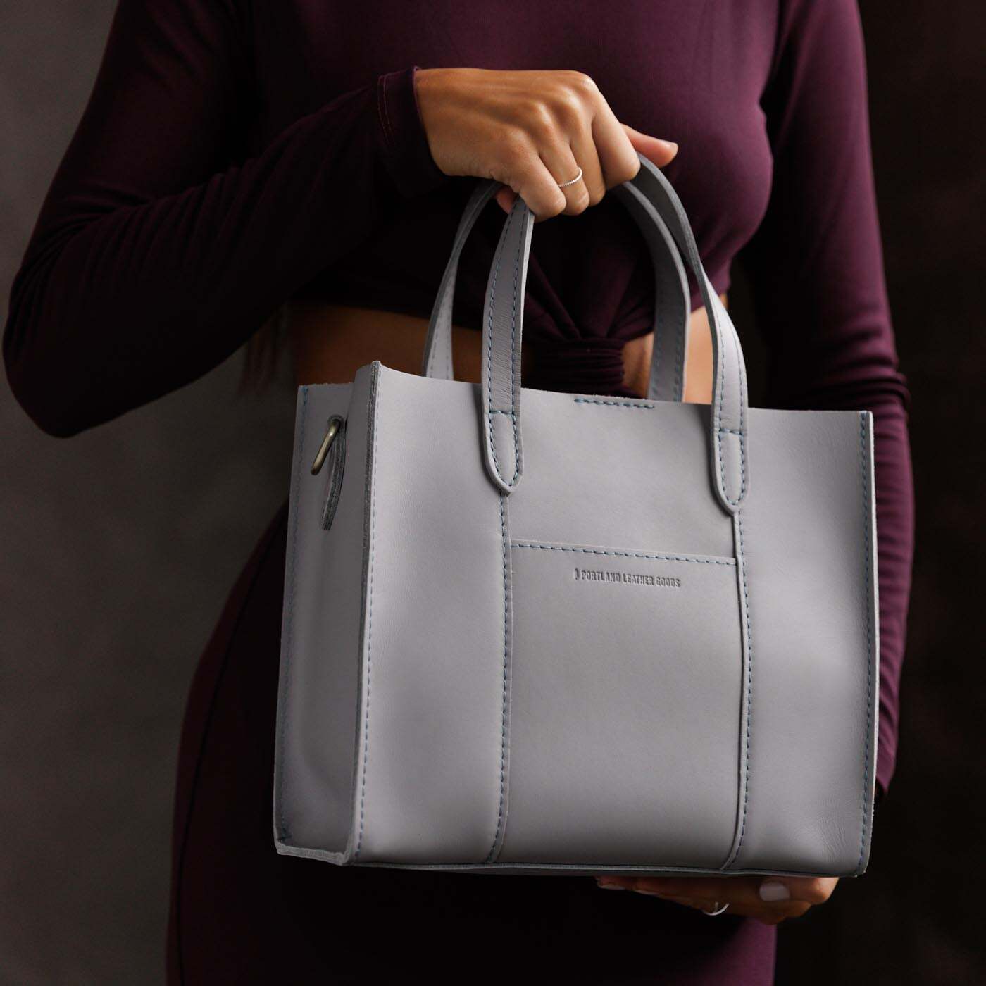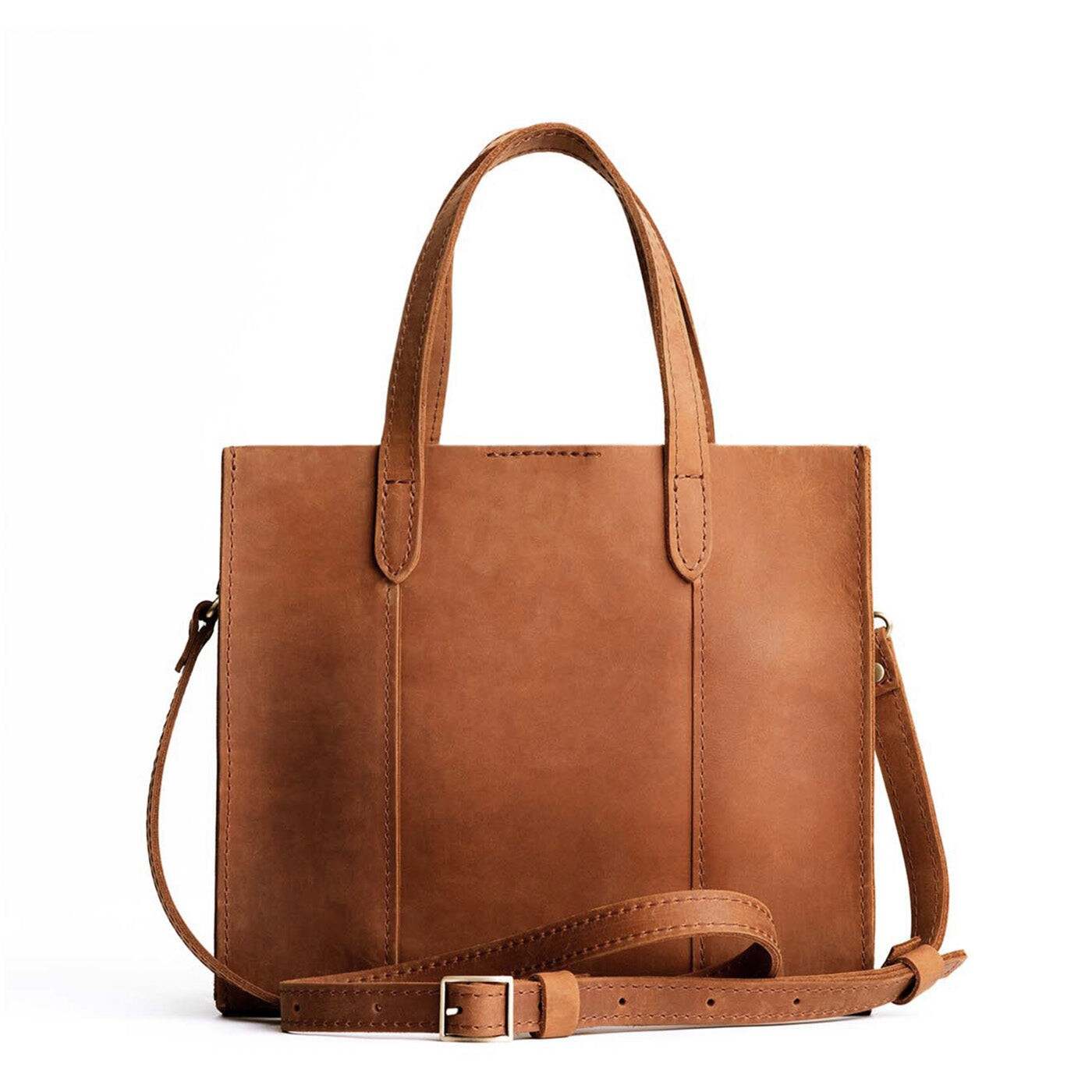 - Stitched carrying handles made from double-layered leather