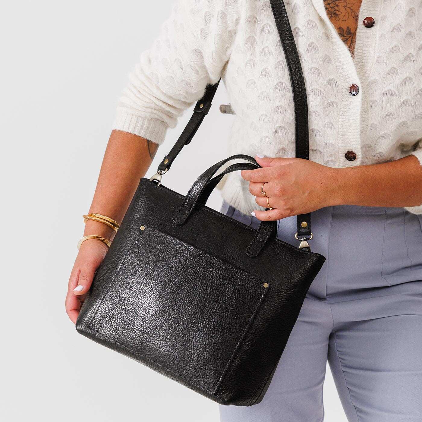 - Adjustable crossbody strap